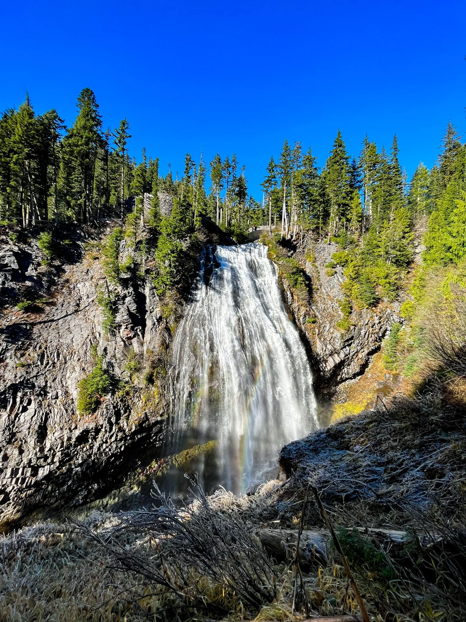 Not too far from Narada Falls, you will find Christine Falls! The hardest part about viewing these falls is finding parking. Be careful if the small lot is full and you park on the shoulder. After parking, follow the short trail to the view point across from the falls. From the viewpoint, you might notice a trail that seems to lead down to the base of the falls. This trail doesn't take you to better views- stay at the top across from the bridge and enjoy!